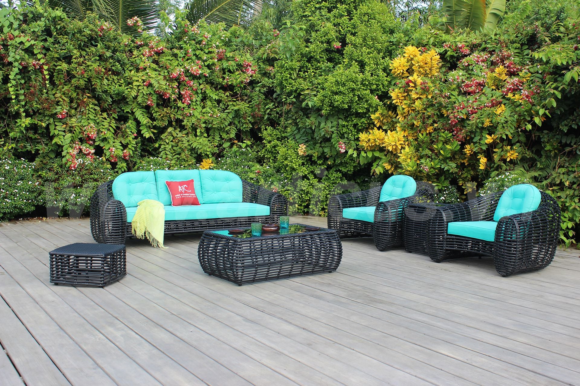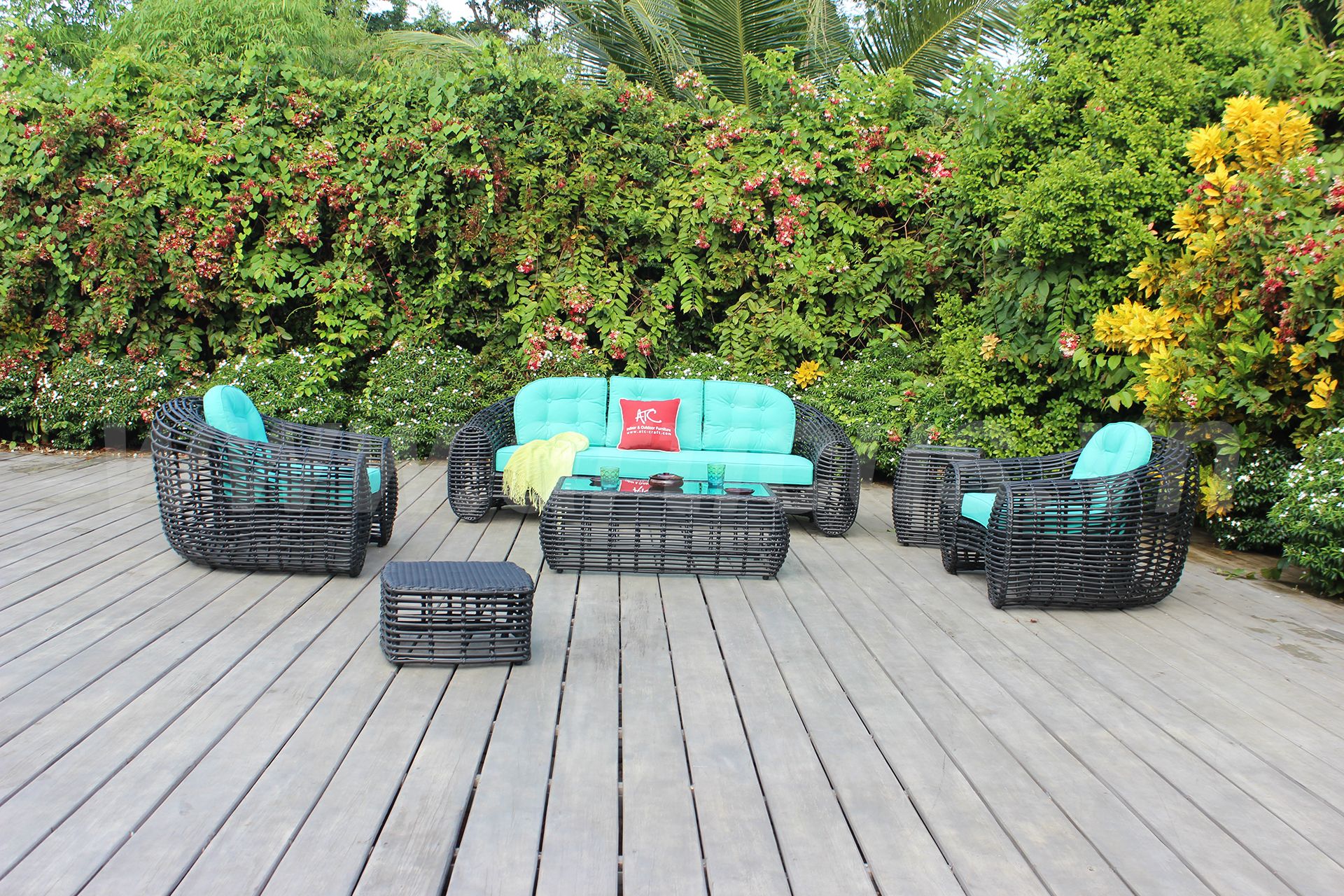 ATC Furniture hiện đang cung cấp dòng sản phẩm bộ sofa giả tre ngoài trời sang trọng RASF-053 bao gồm 2 ghế sofa đơn, 1 ghế sofa ba, 1 bàn chính và 1 bàn góc với kính cường lực 8mm cùng với 1 ghế đôn có đệm. Bộ sản phẩm này thích hợp với các không gian sân vườn cho biệt thự, khách sạn, nhà hàng, villa nghỉ dưỡng,...