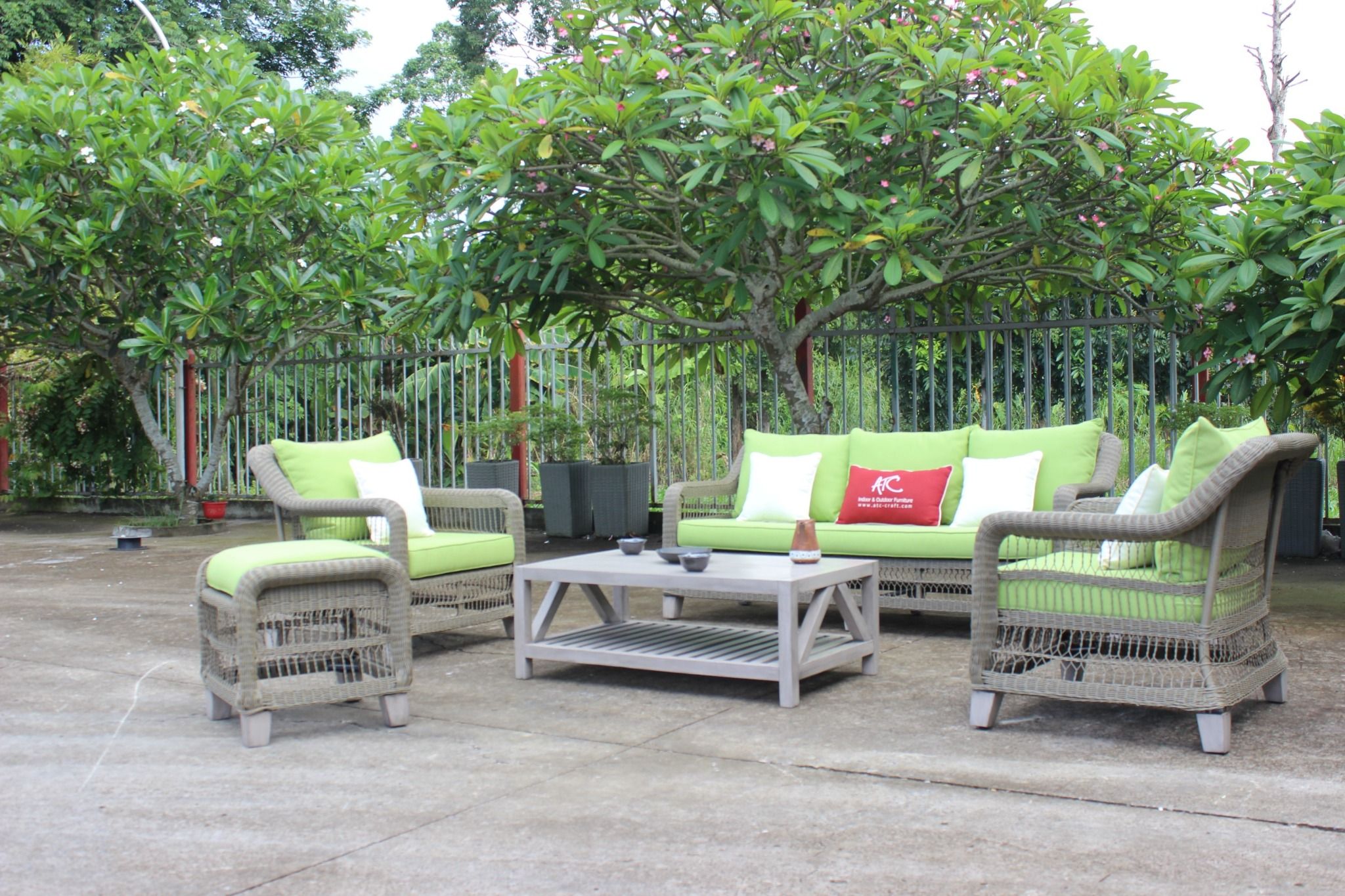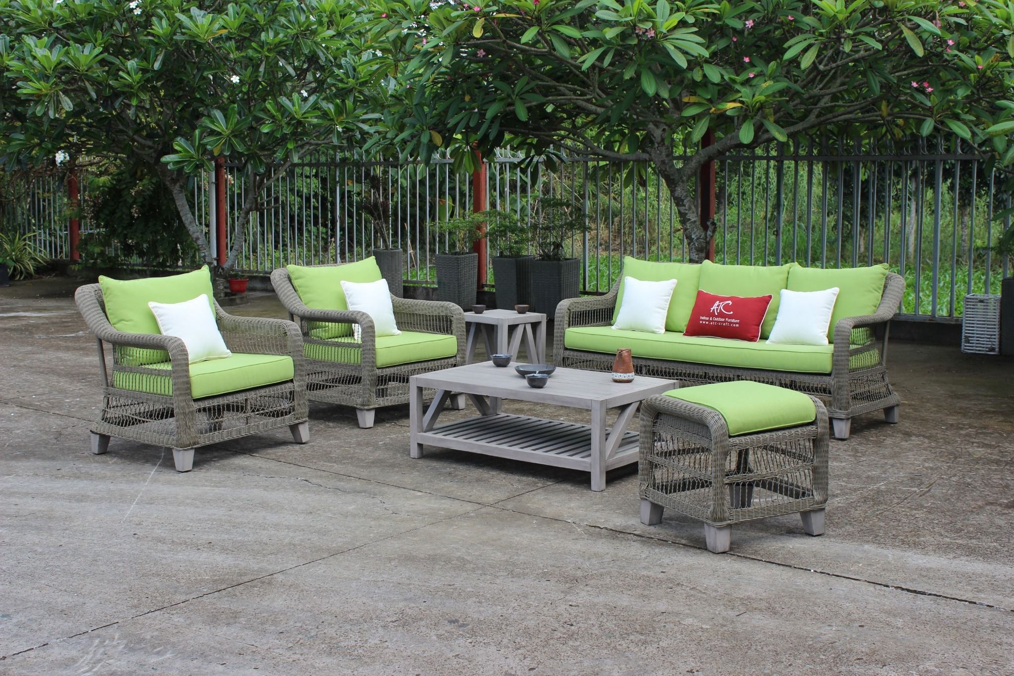 ATC Furniture hiện đang cung cấp Bộ Sofa Dây Tròn Dành Cho Sân Vườn RASF-121 bao gồm 2 sofa đơn, 1 sofa ba, 1 bàn gỗ, 1 ghế đôn có nệm cùng với 1 bàn góc gỗ.